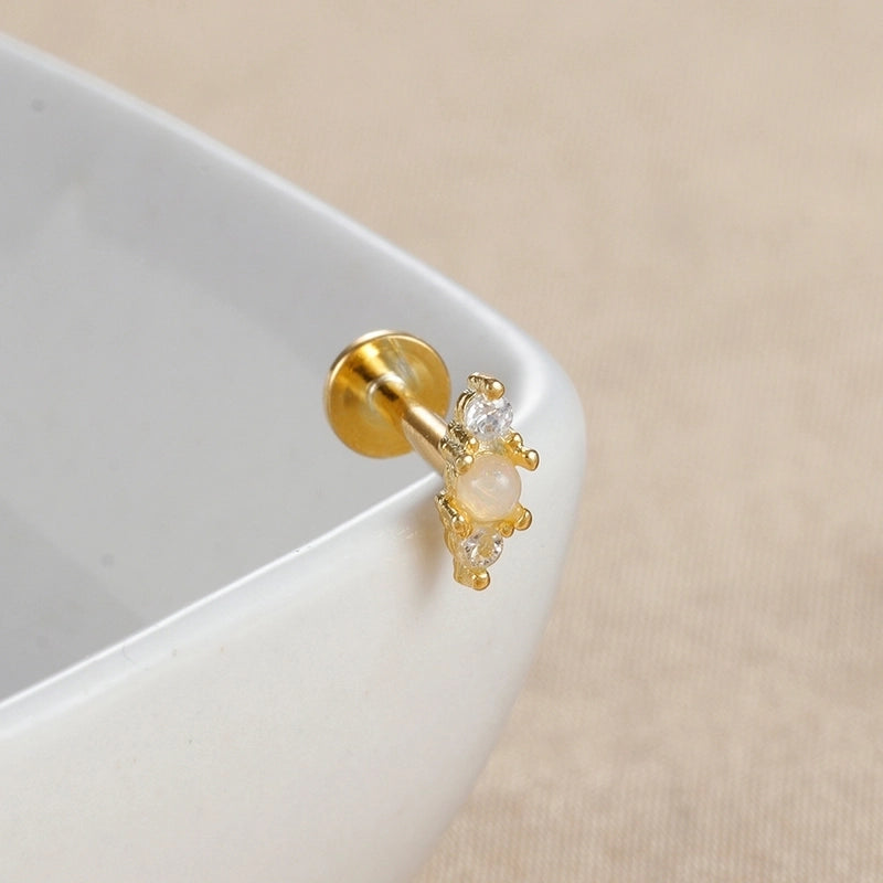 1 Piece Ear Cartilage Rings & Studs IG Style Minimalist Geometric Copper Inlay Gem Zircon Ear Cartilage Rings & Studs