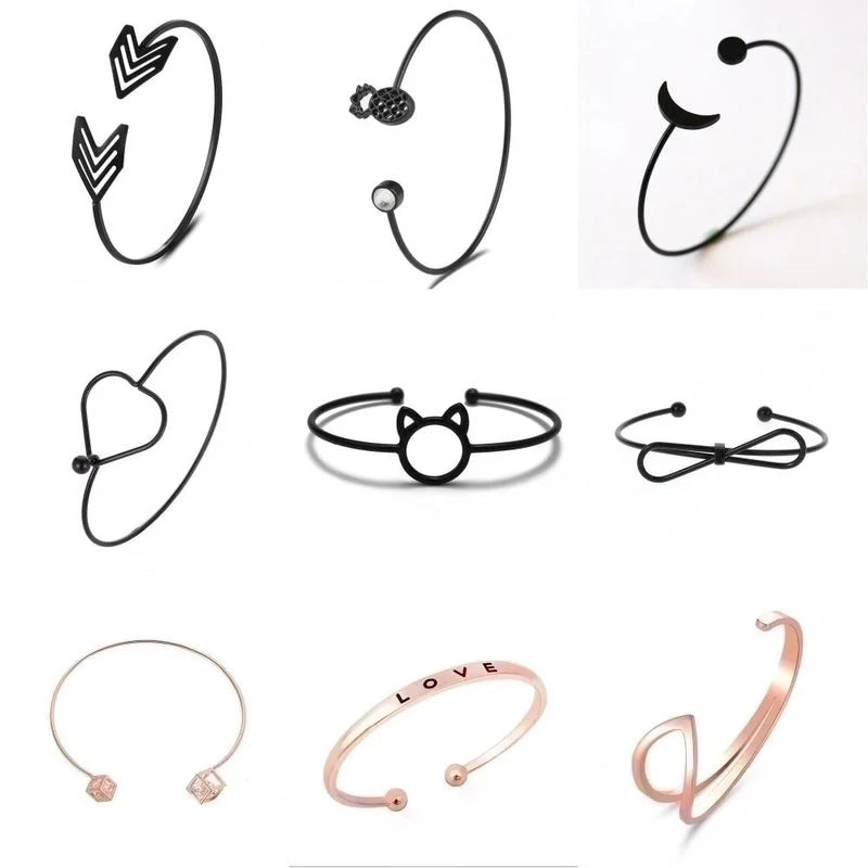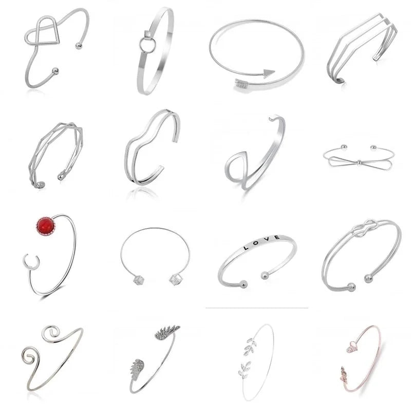Alloy Gold Plated Silver Plated Fashion Plating Inlay Heart Shape Feather Bow Knot Bangle