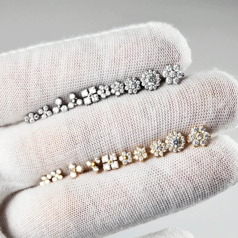 2 Pieces 3 Pieces Lip Rings Casual Elegant Vacation Triangle Flower G23 Titanium Zircon Zircon 18K Gold Plated Lip Rings Ear Cartilage Rings & Studs