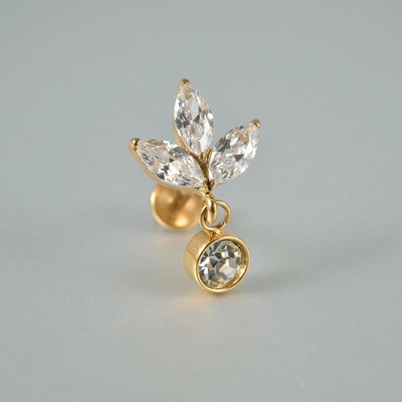 1 Piece Lip Rings Casual Vacation Tropical Cross G23 Titanium Alloy Plating Zircon 18K Gold Plated Lip Rings Ear Cartilage Rings & Studs