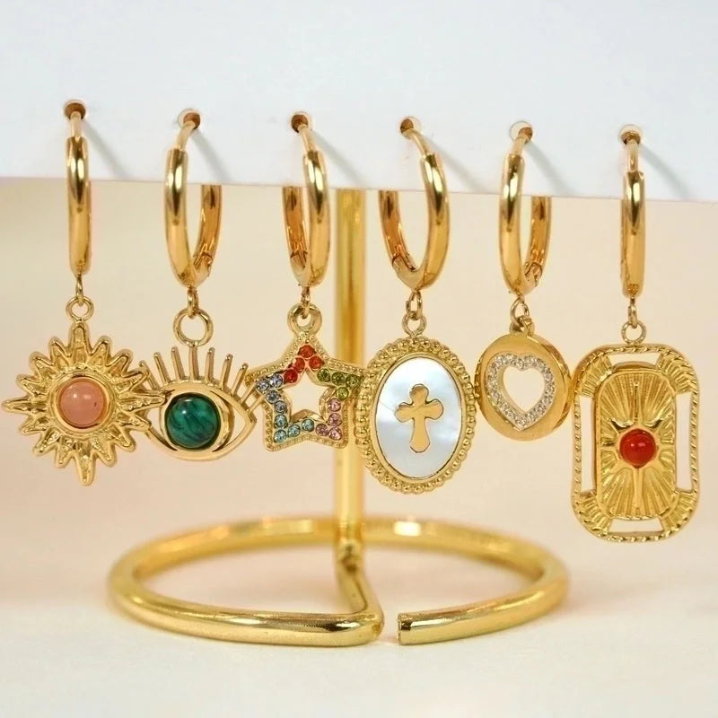 6 Pieces Minimalist Classic Style Solid Color Inlay 304 Stainless Steel Rhinestones Drop Earrings