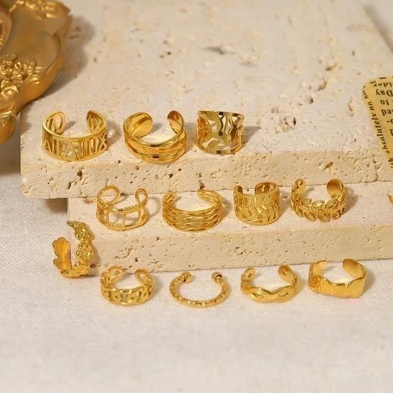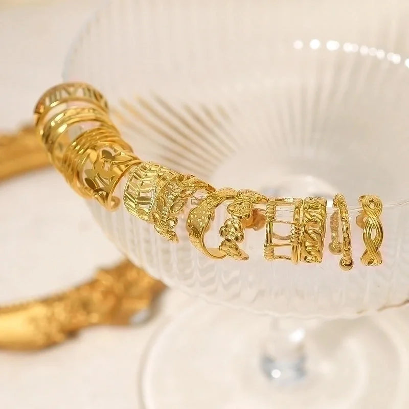 1 Piece Minimalist Leaf Roman Numeral Flower Plating 304 Stainless Steel 18K Gold Plated Ear Cuffs