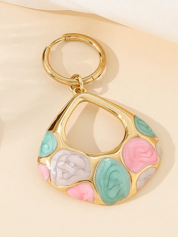 1 Piece Retro French Style Artistic Water Droplets 304 Stainless Steel Glass 18K Gold Plated Drop Earrings