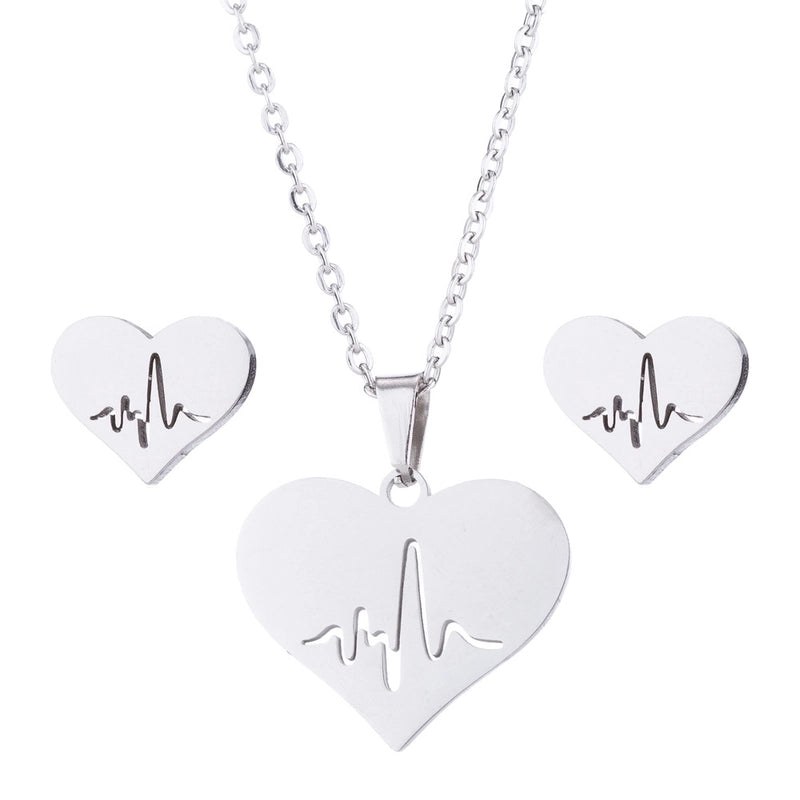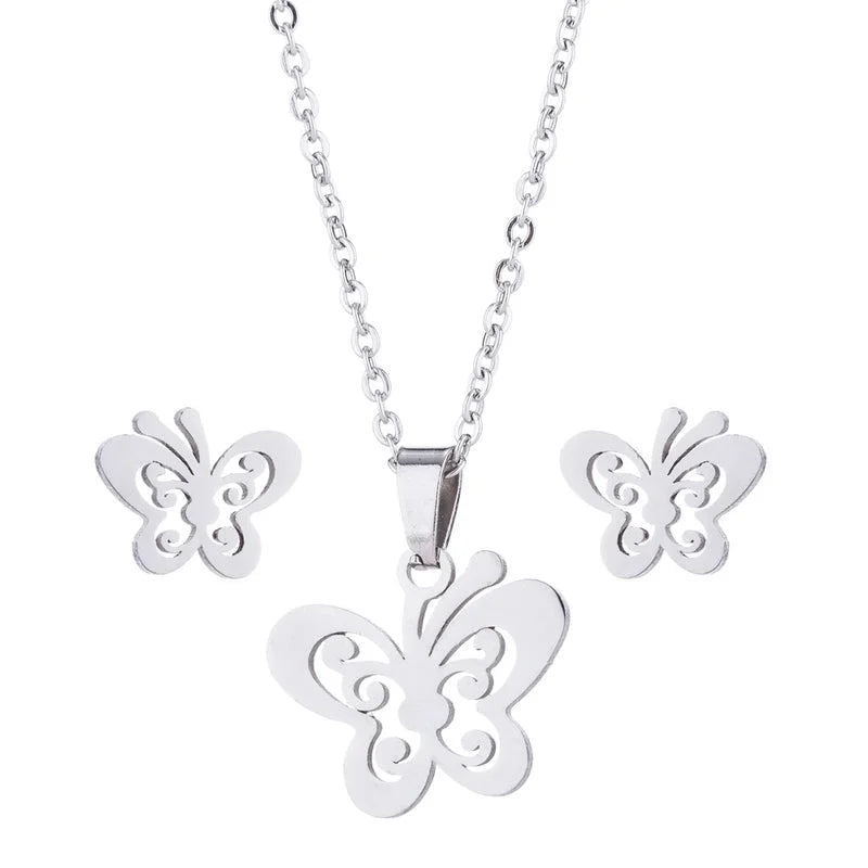 Fashion Heart Shape Butterfly Elephant 201 Stainless Steel 18K Gold Plated Earrings Necklace