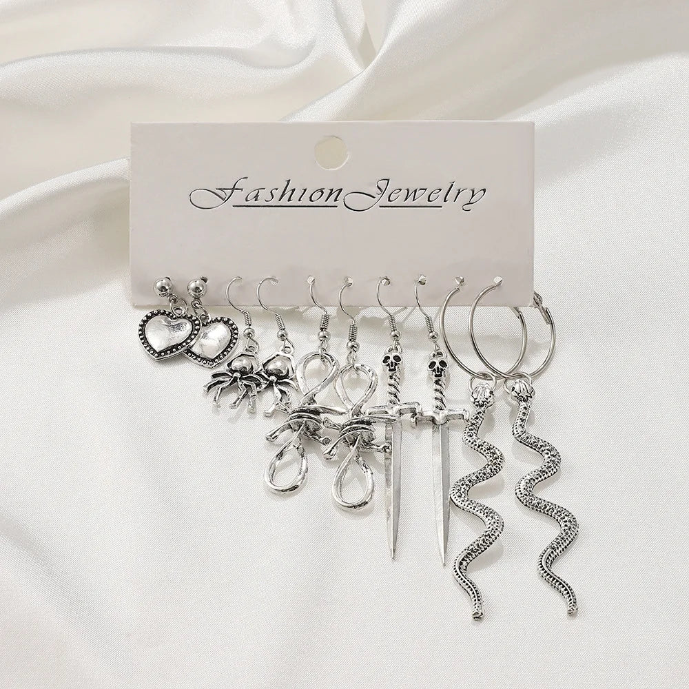 1 Set Gothic Vintage Style Funny Pumpkin Spider Skull Alloy Silver Plated Drop Earrings