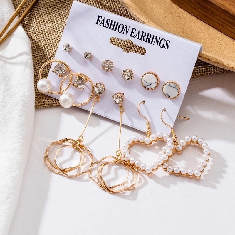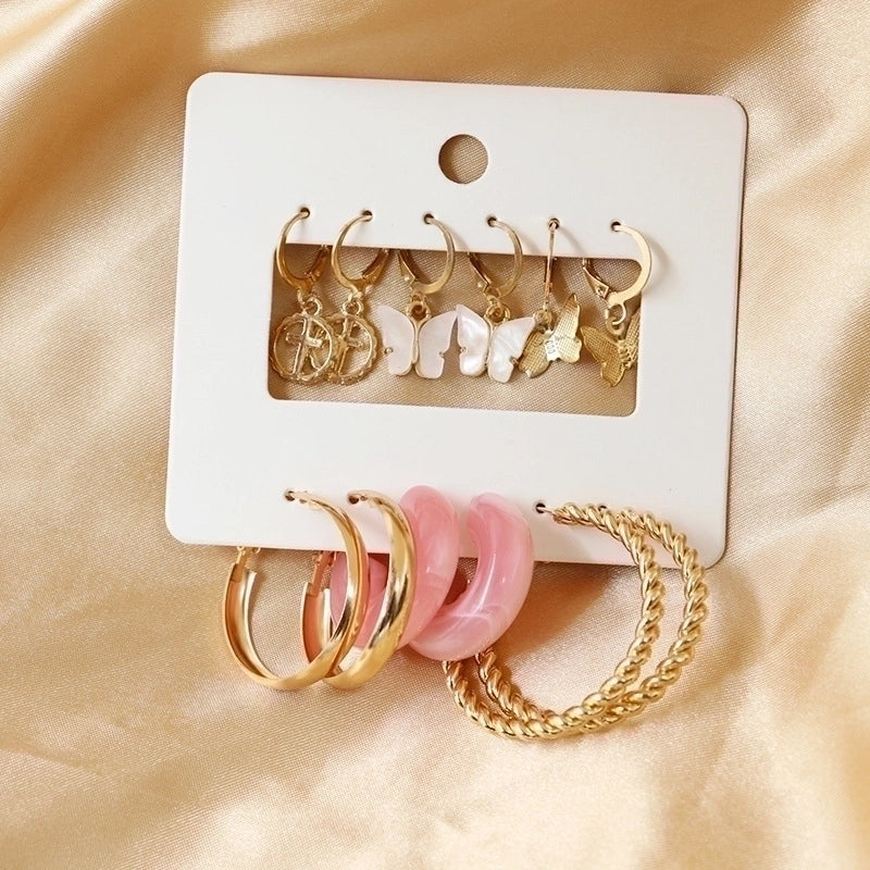 1 Set Minimalist Circle Heart Shape Butterfly Metal Plating Inlay Pearl Women\'s Earrings