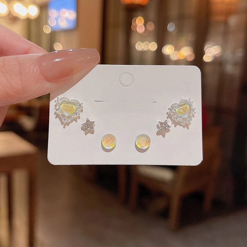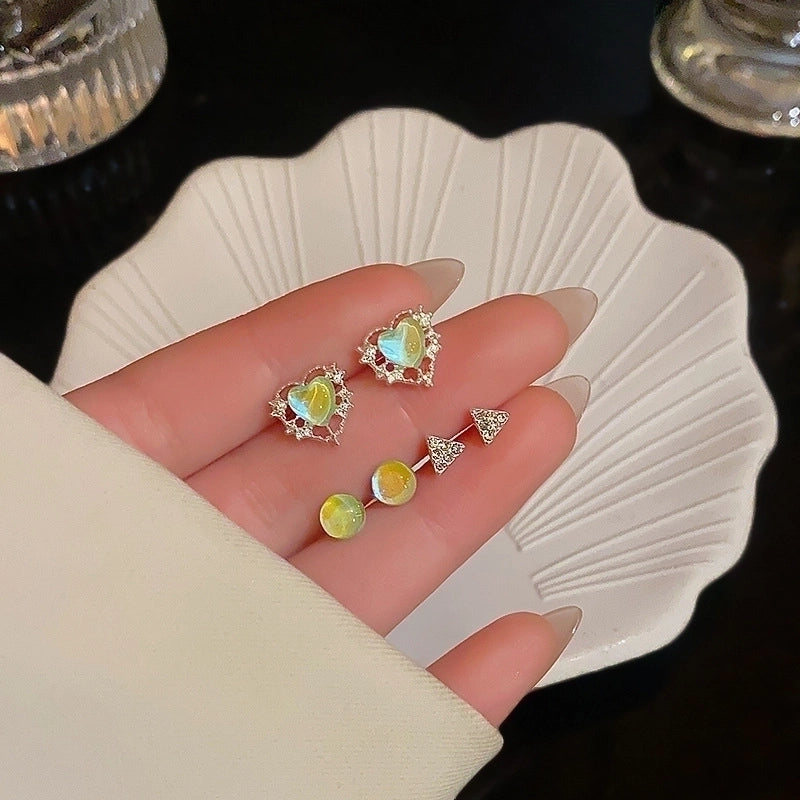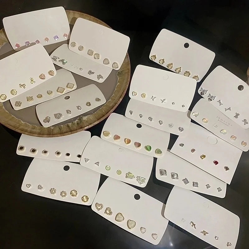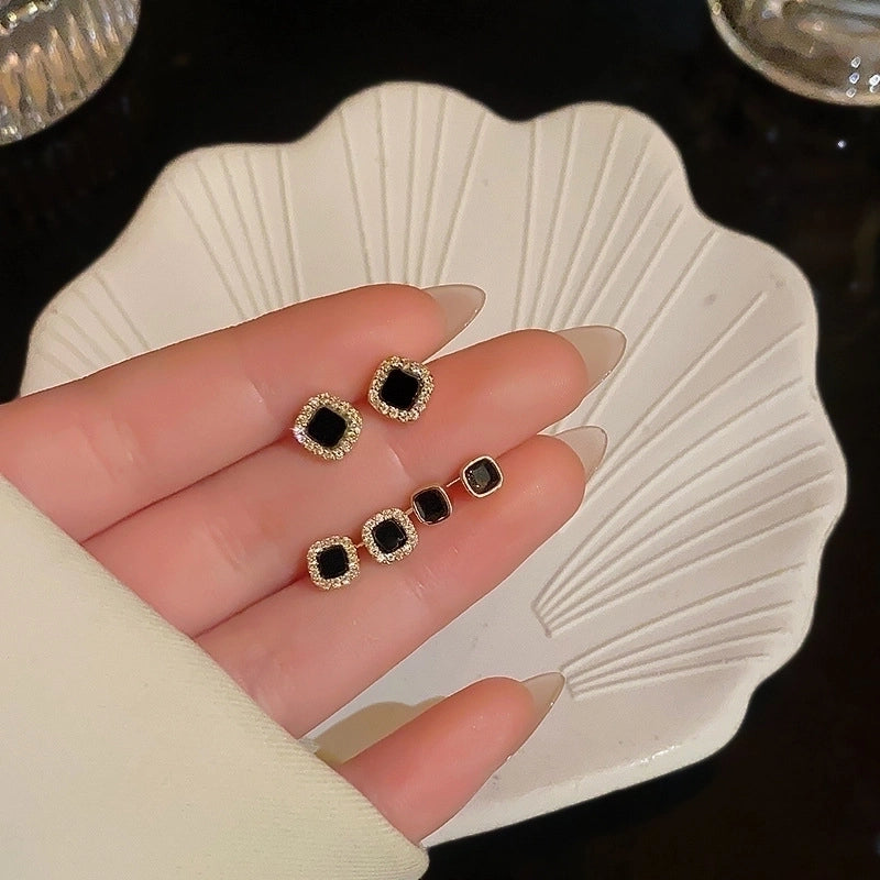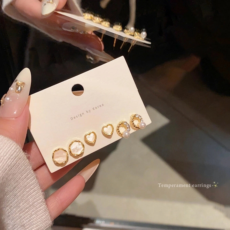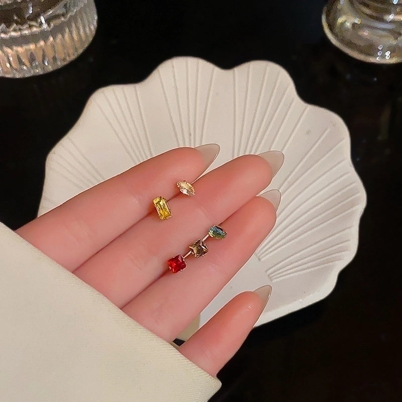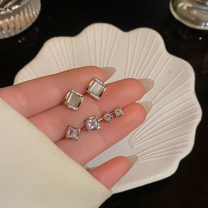 1 Set Minimalist Geometric Enamel Plating Inlay Copper Rhinestones Opal Shell Earrings