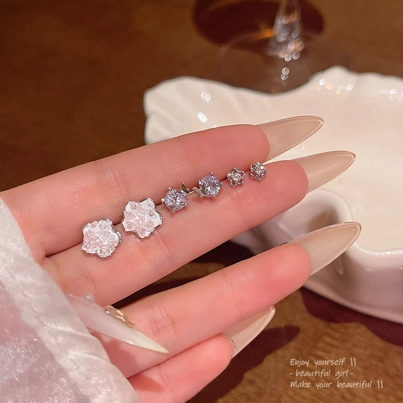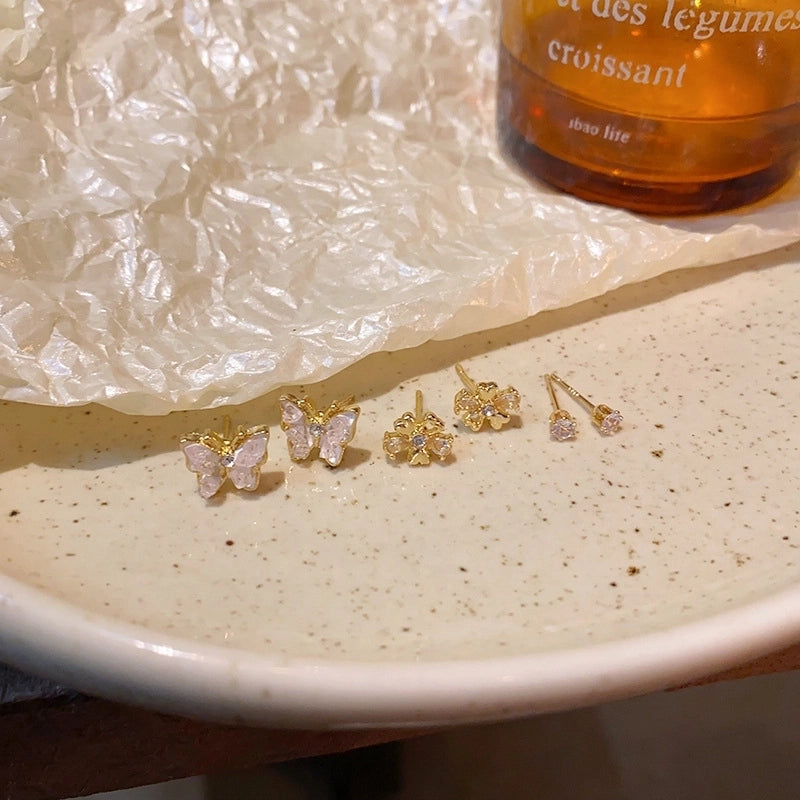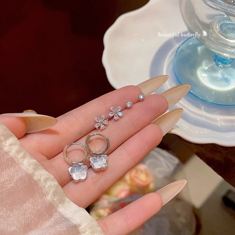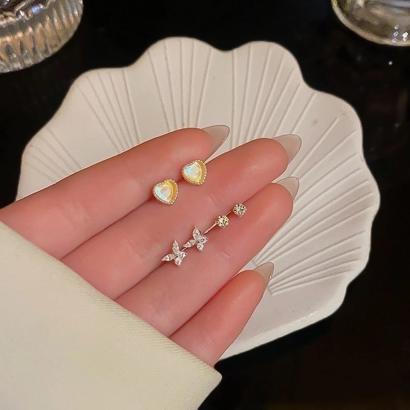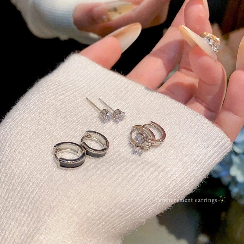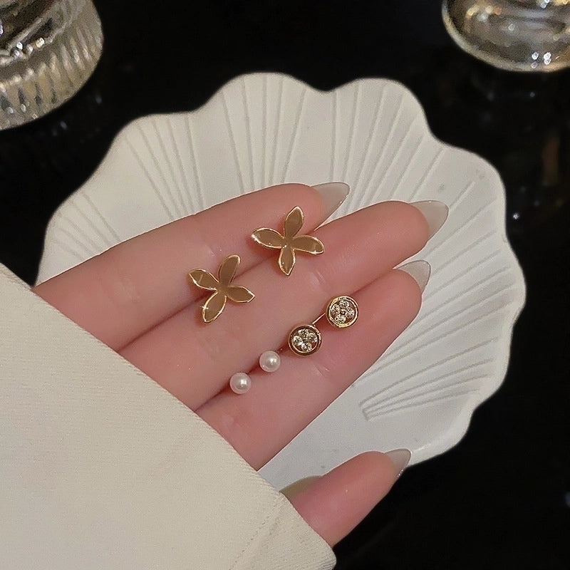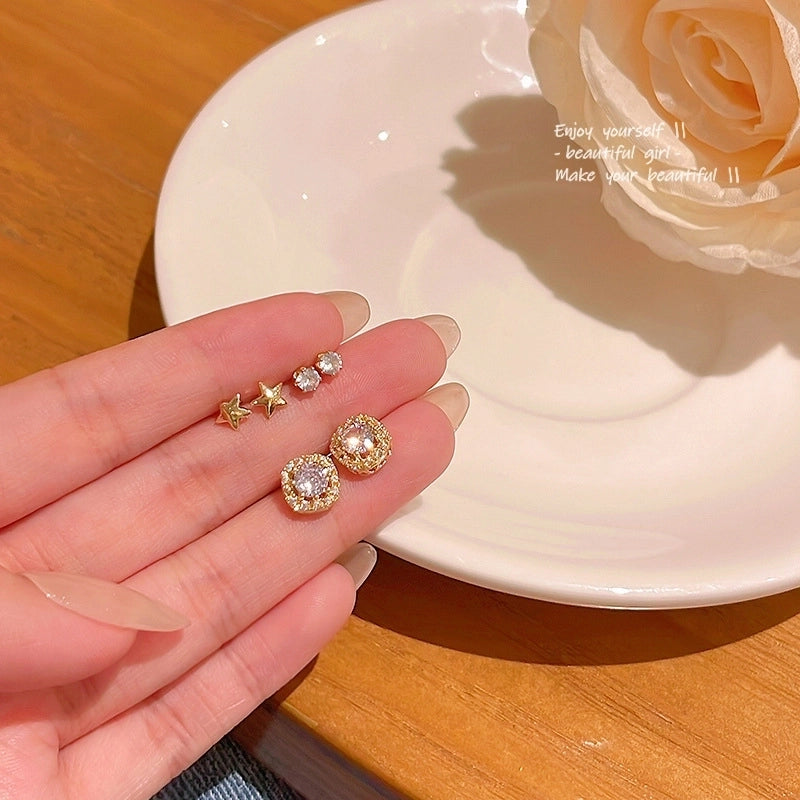 1 Set Minimalist Geometric Enamel Plating Inlay Copper Rhinestones Opal Shell Earrings