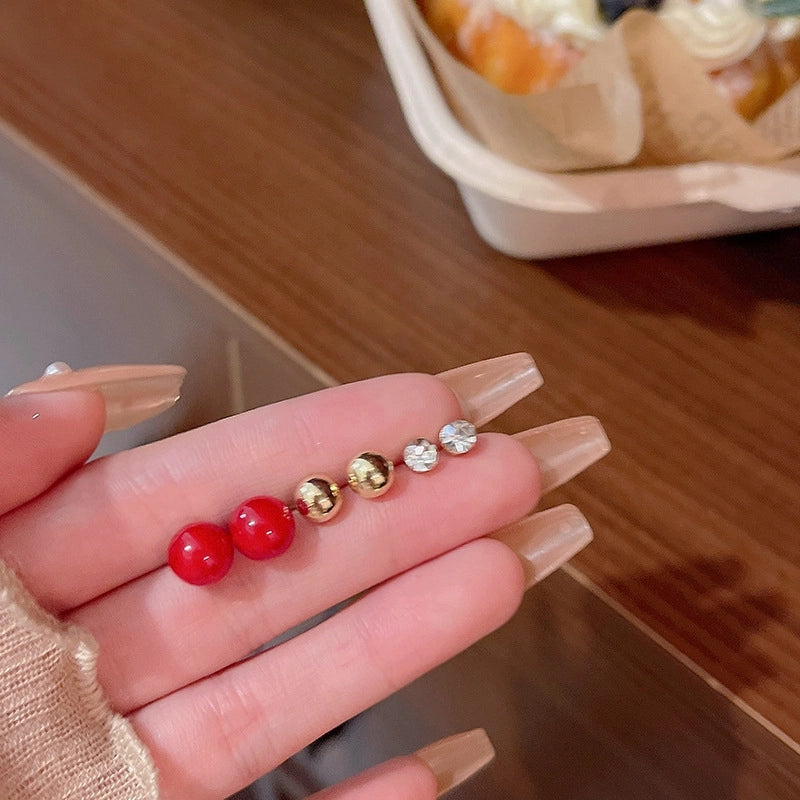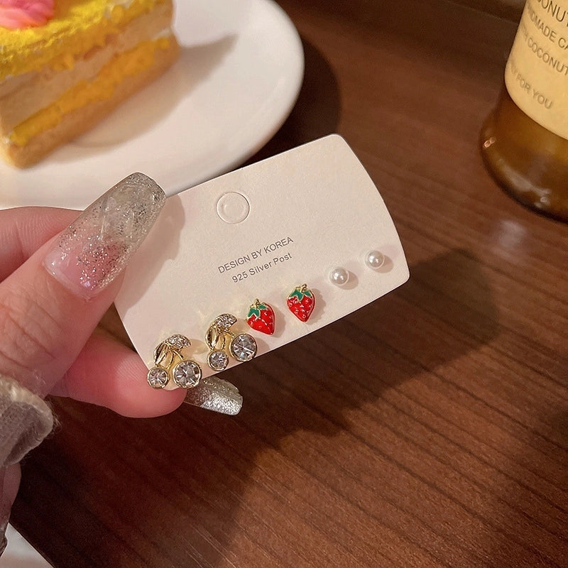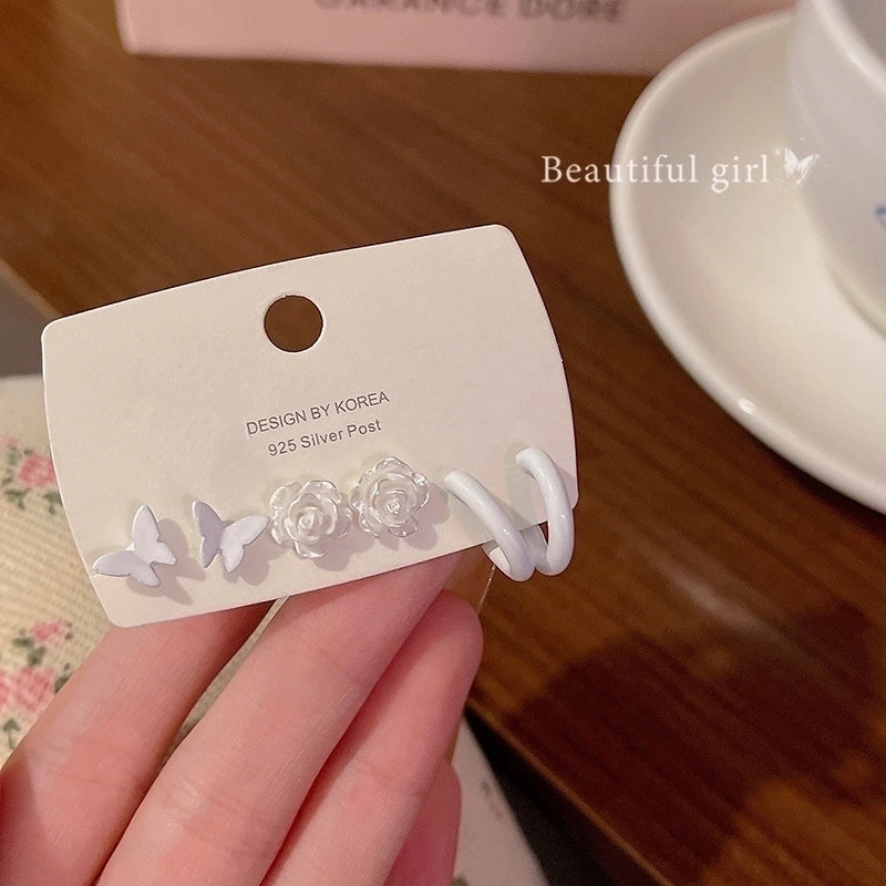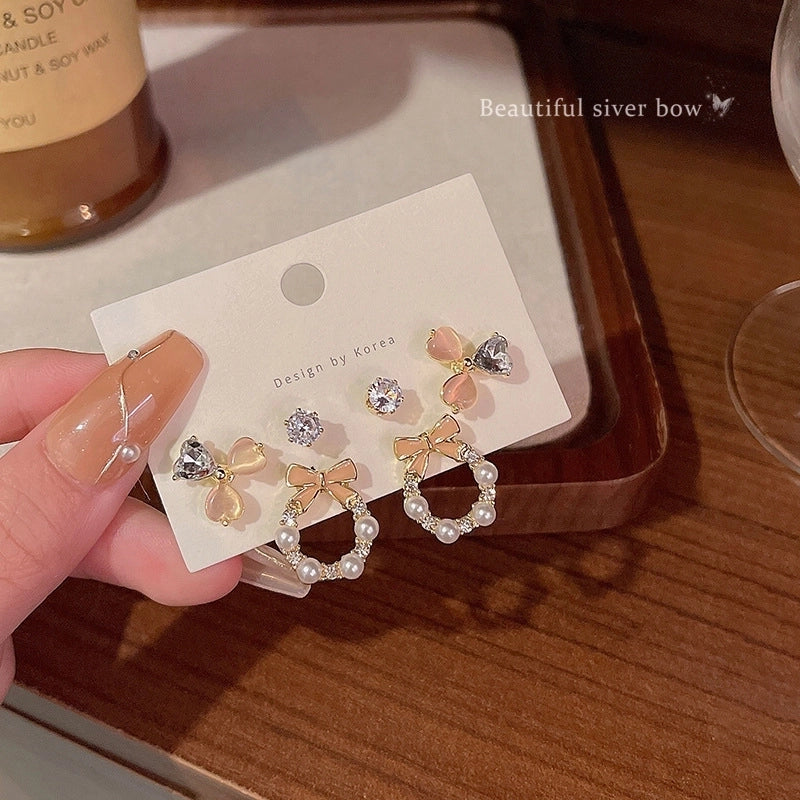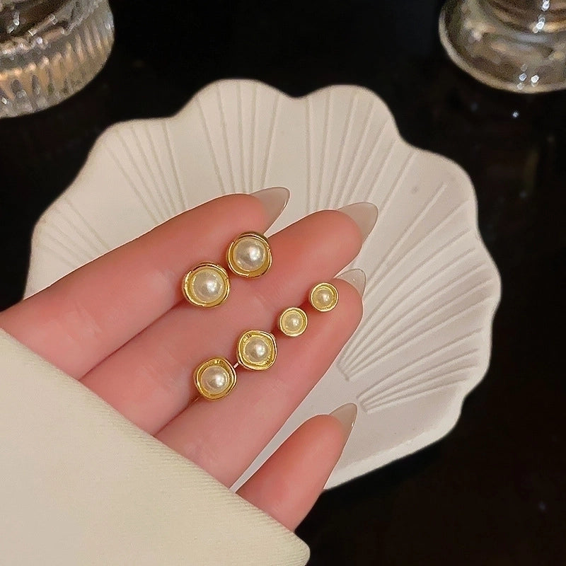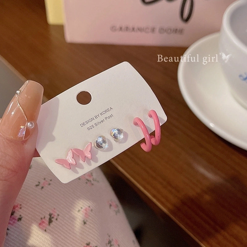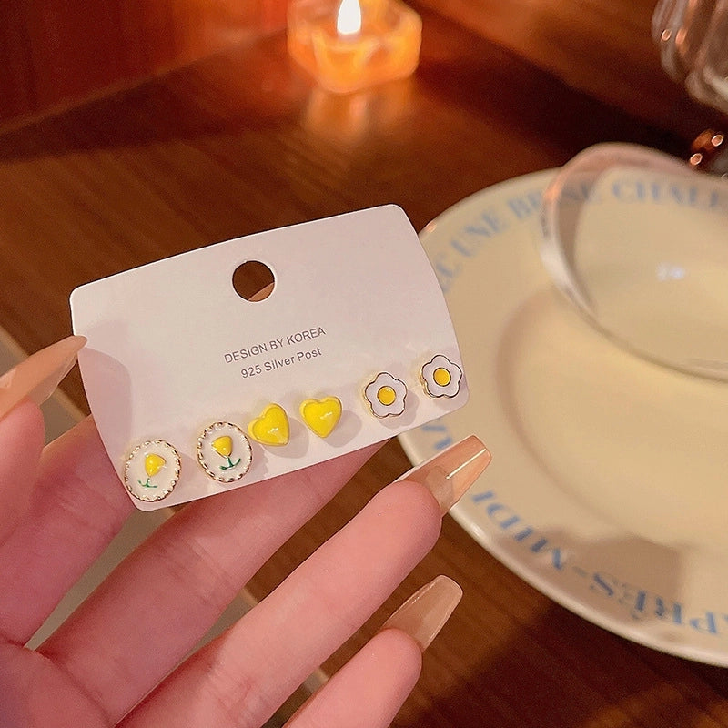 1 Set Minimalist Geometric Enamel Plating Inlay Copper Rhinestones Opal Shell Earrings