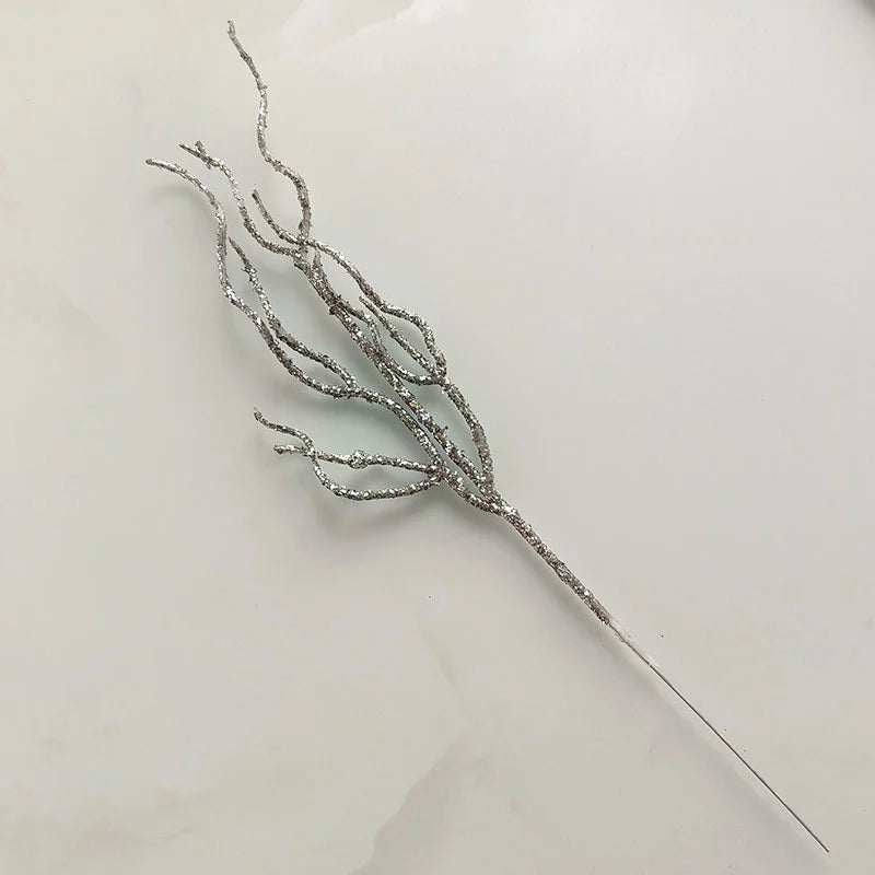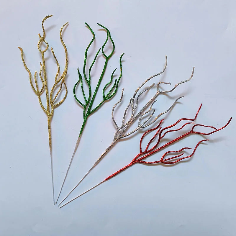 10 Pieces Christmas Decoration Real Tree Branches Golden Bells Dried Tree Branches Leaf Material Accessories Glitter Dried Tree Branches Festive Atmosphere Party Branches