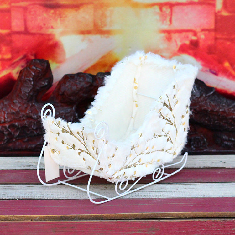 2 Pieces Christmas Supplies Christmas Decoration Velvet Printed Fabric Deer Carriage Snow Carriage Front Desk Tabletop Decoration Ornament