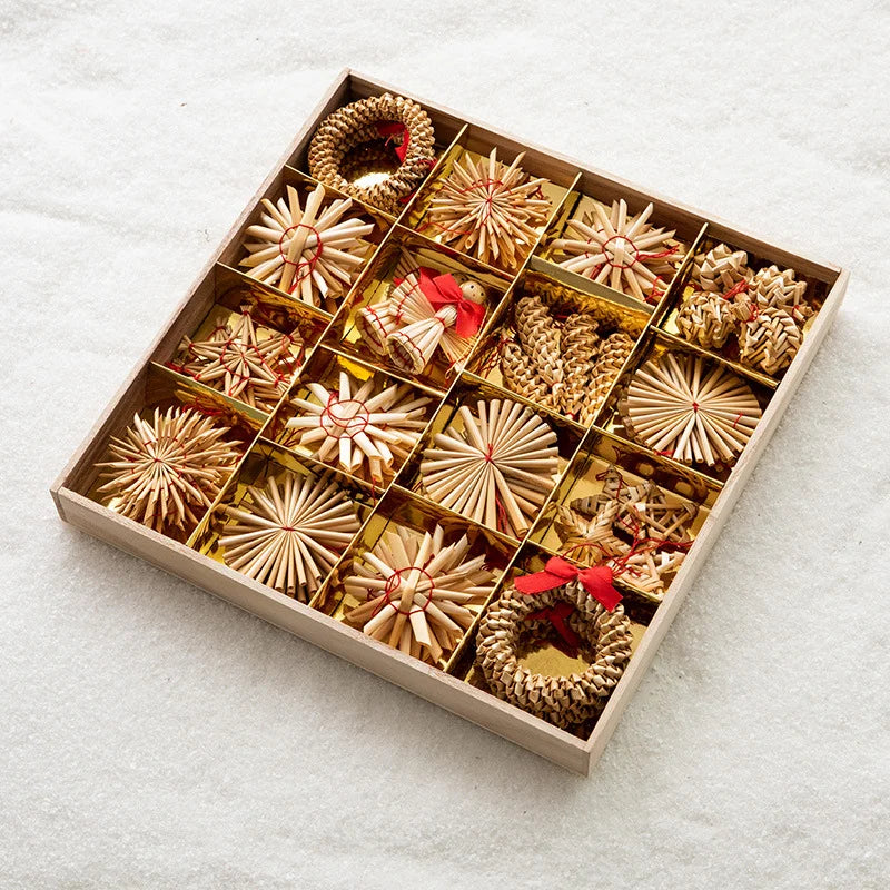 200 Boxes Hot Selling Natural Wheat Straw Handmade Five-pointed Star Snowflake Snowman Christmas Tree Pendant Christmas Decoration