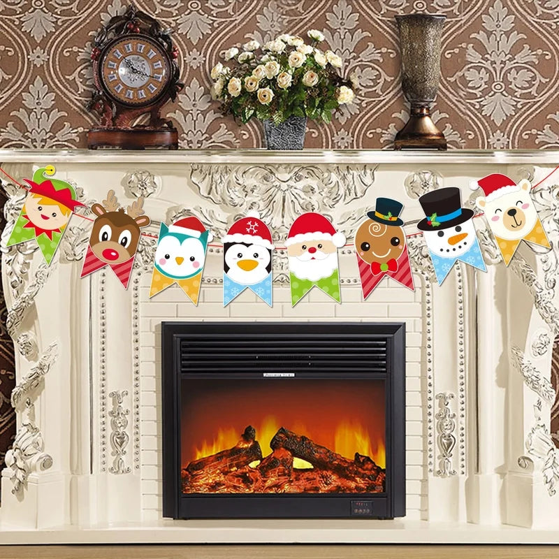 2024 Christmas Decorations New Creative Paper Flag Fawn Santa Claus Flower Holiday Scene Layout