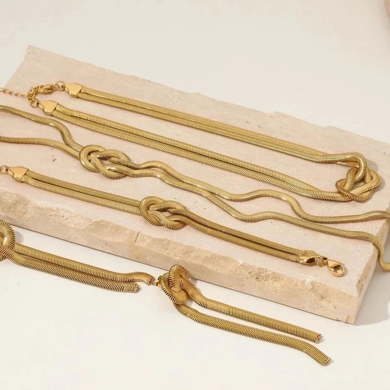 304 Stainless Steel 16K Gold Plated White Gold Plated Gold Plated Casual Knot Bracelets Earrings Necklace