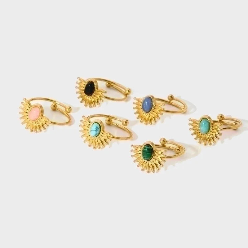 304 Stainless Steel 18K Gold Plated Casual Minimalist Polishing Plating Geometric Natural Stone Adjustable Ring