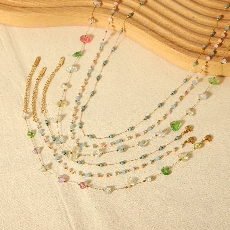 304 Stainless Steel 18K Gold Plated Minimalist Classic Style Polishing Plating Inlay Round Natural Stone Bracelets Anklet Necklace