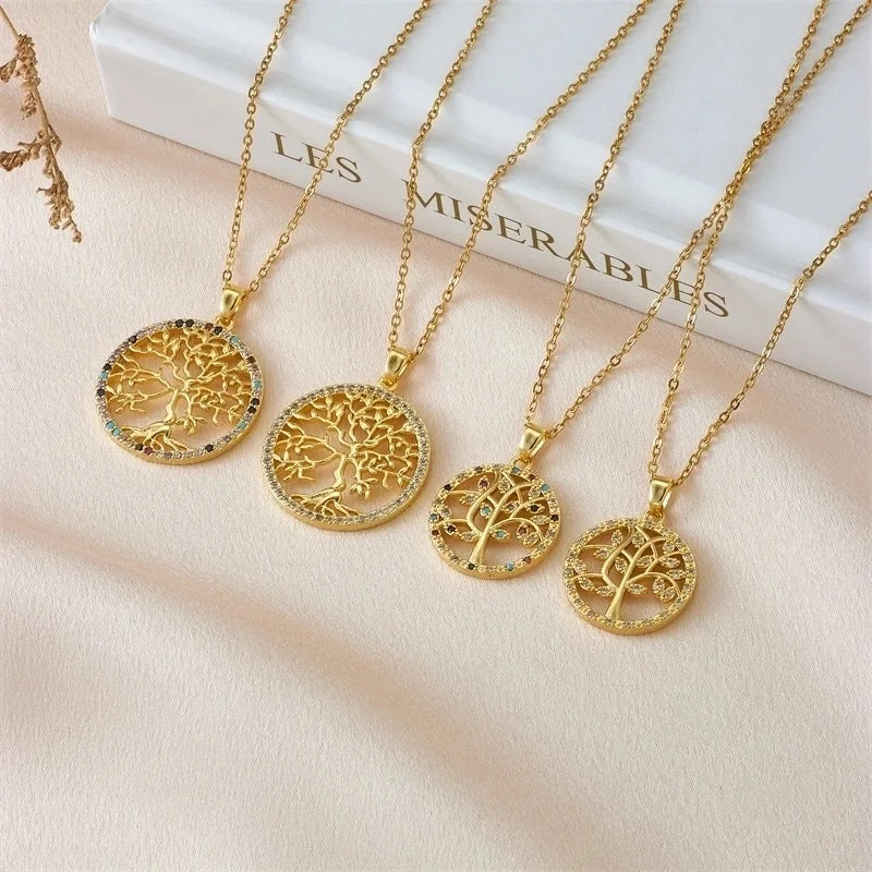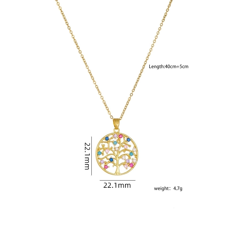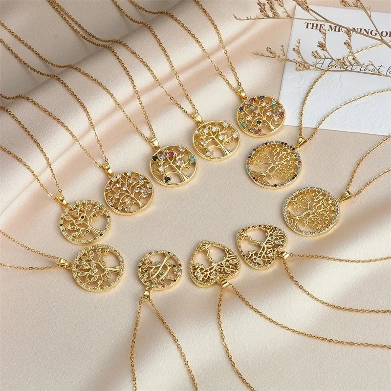 304 Stainless Steel Copper Heart Shape Life Tree Pendant Necklace