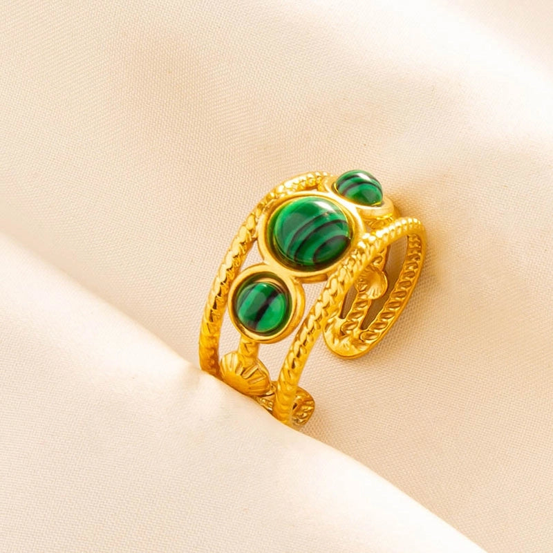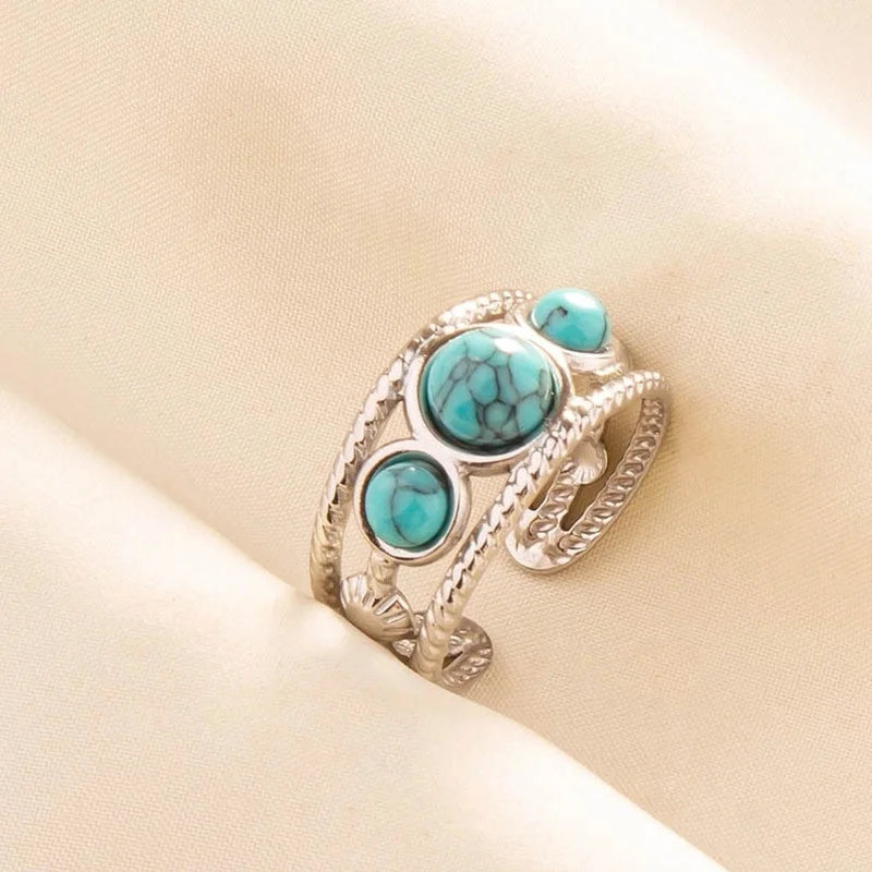 2 Pieces 304 Stainless Steel Minimalist Inlay Round Artificial Gemstones Rings
