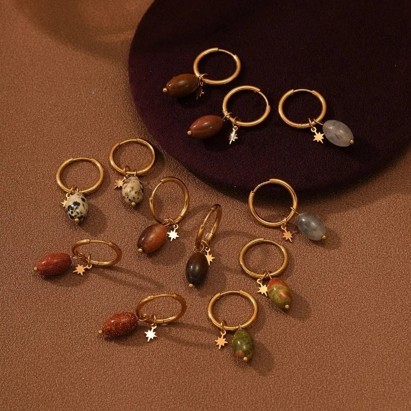 304 Stainless Steel Natural Stone Minimalist Plating Geometric Star Drop Earrings