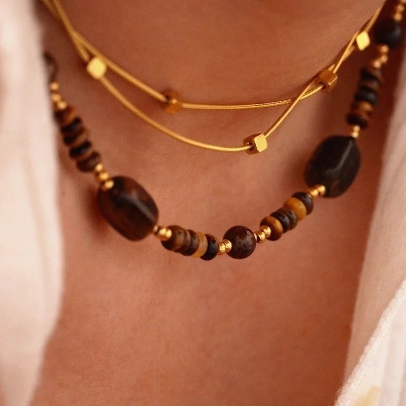 304 Stainless Steel Titanium Steel 14K Gold Plated Vintage Style Lady Classic Style Beaded Plating Inlay Geometric Natural Stone Rings Necklace