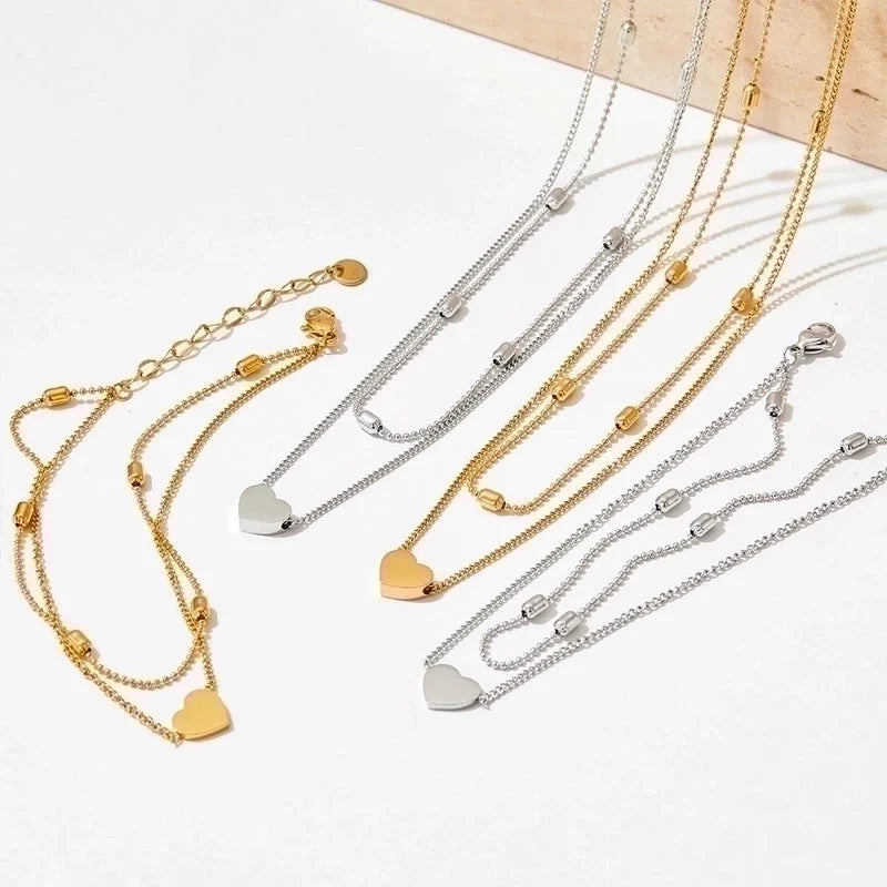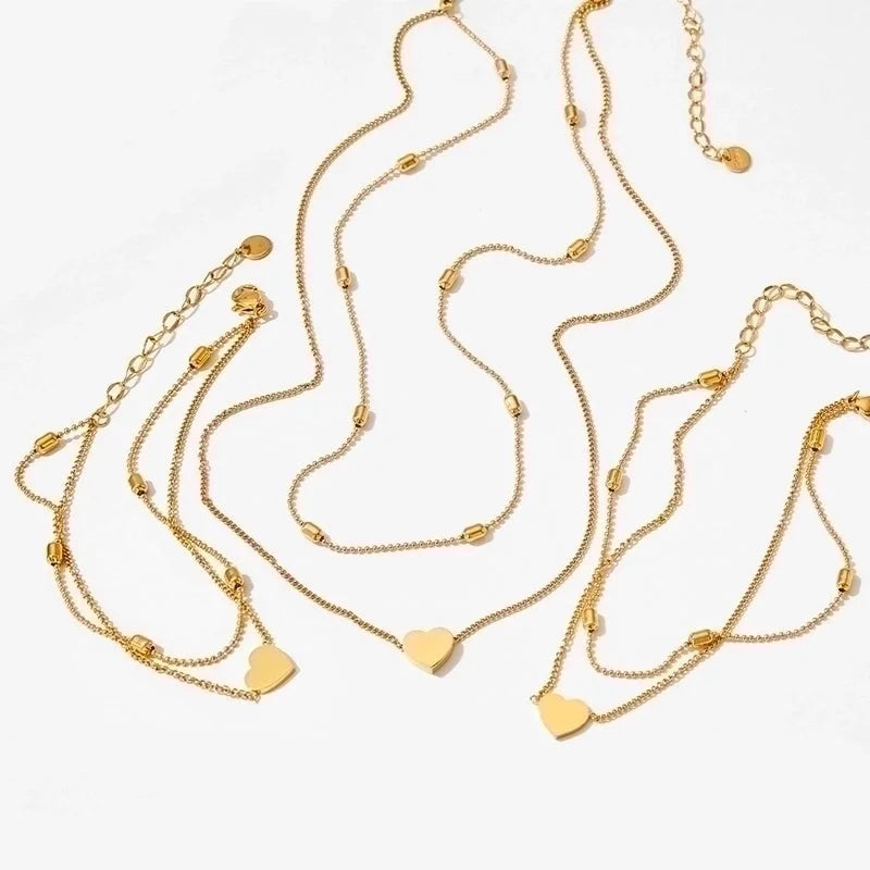 3 Pieces 304 Stainless Steel Titanium Steel 16K Gold Plated White Gold Plated Gold Plated Beach Plating Heart Shape Bracelets Anklet Necklace