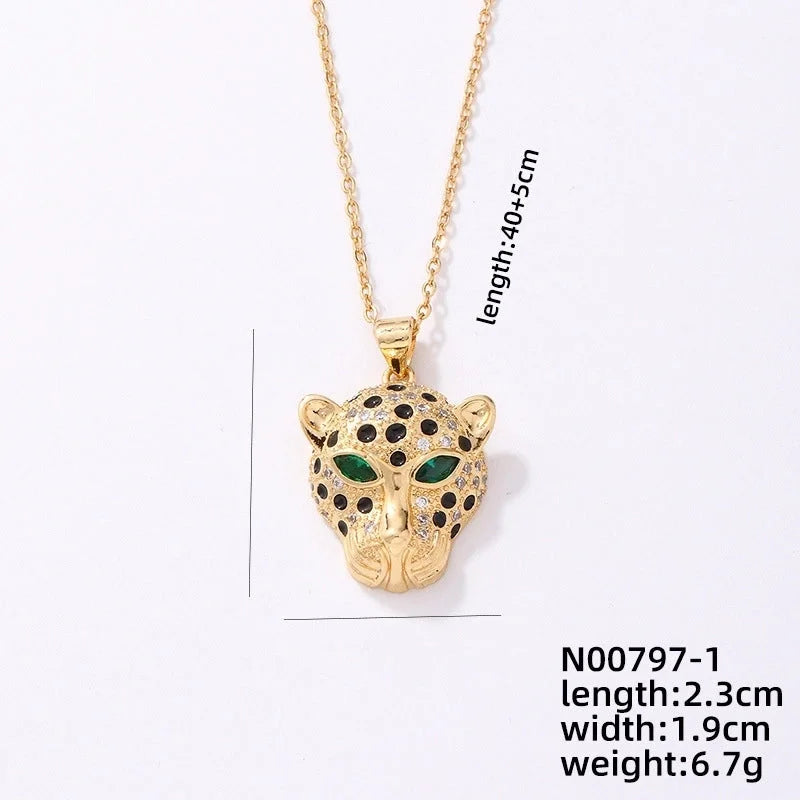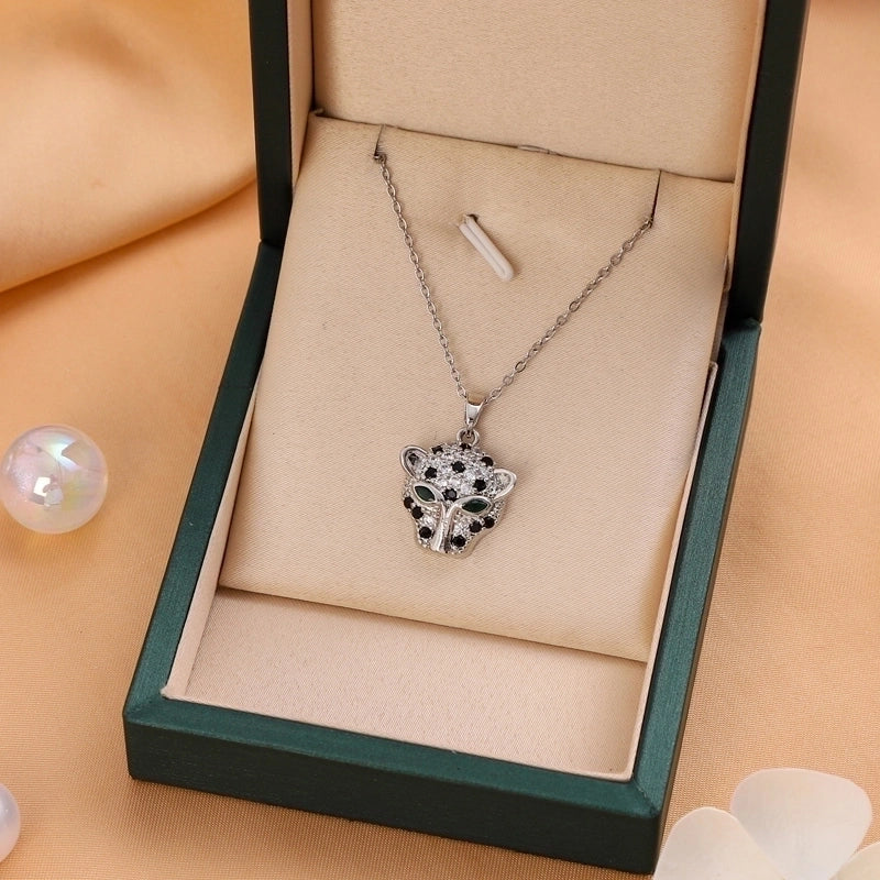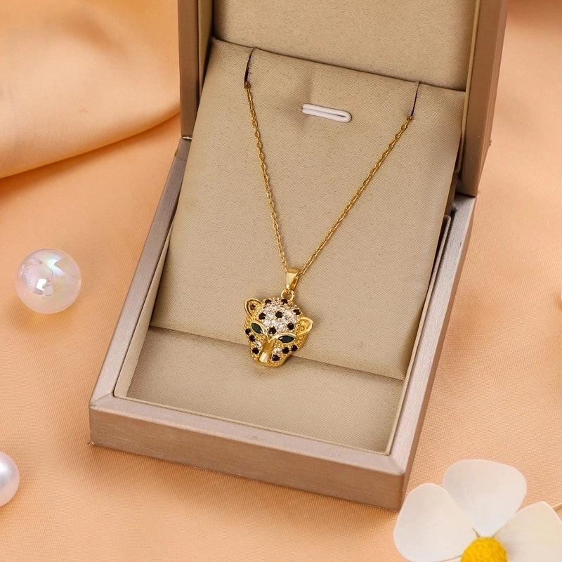316L Stainless Steel Brass Minimalist Cool Style Inlay Jaguar Zircon Pendant Necklace
