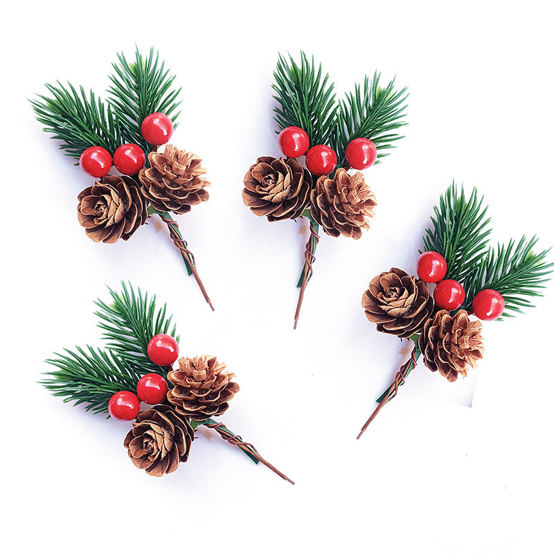 5 Pieces Pine Needle Mini Christmas Tree Accessories Gift Box Decoration Real Flowers Christmas Decoration Snow Powder Snowflake Pine Needle