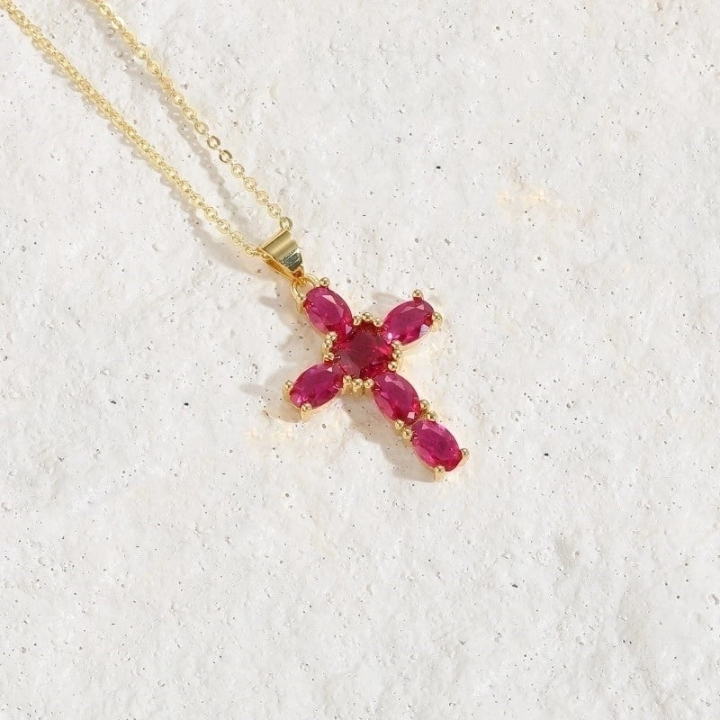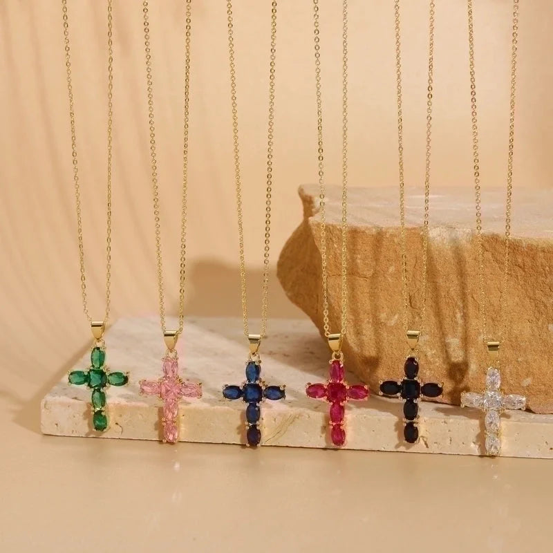 Basic Cross Copper Irregular Plating Inlay Zircon 14k Gold Plated Necklace