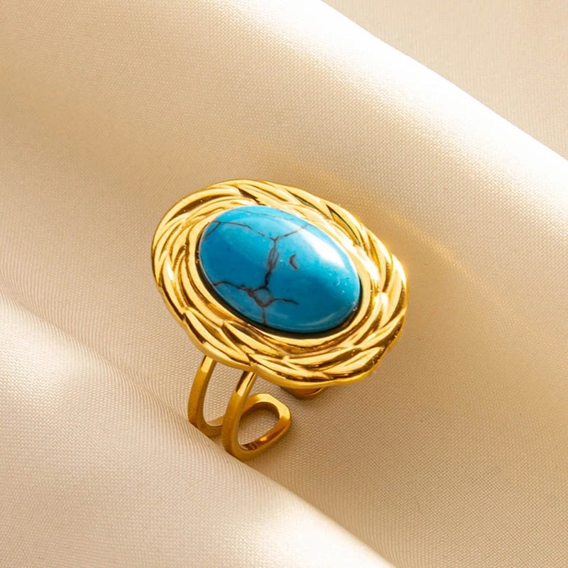 Basic Retro Classic Style Geometric 304 Stainless Steel Titanium Steel Artificial Gemstones Open Rings In Bulk