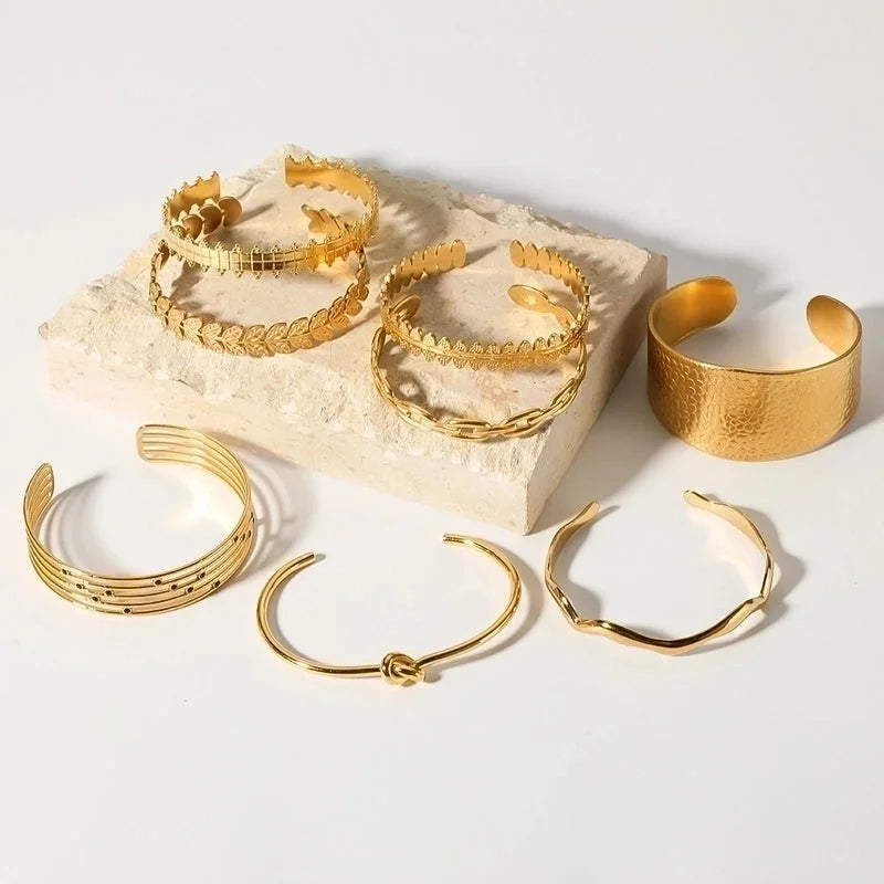 Basic Retro Leaf Solid Color Knot Stainless Steel 18K Gold Plated Bangle In Bulk