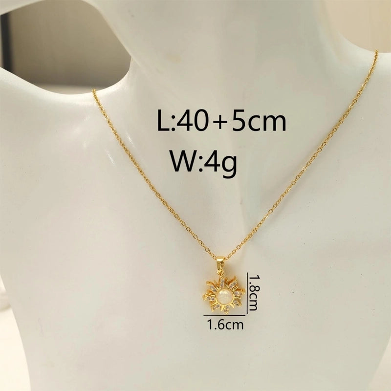 Beach Minimalist Commute Flower Titanium Steel Resin Zircon 18K Gold Plated Inlay Earrings Necklace