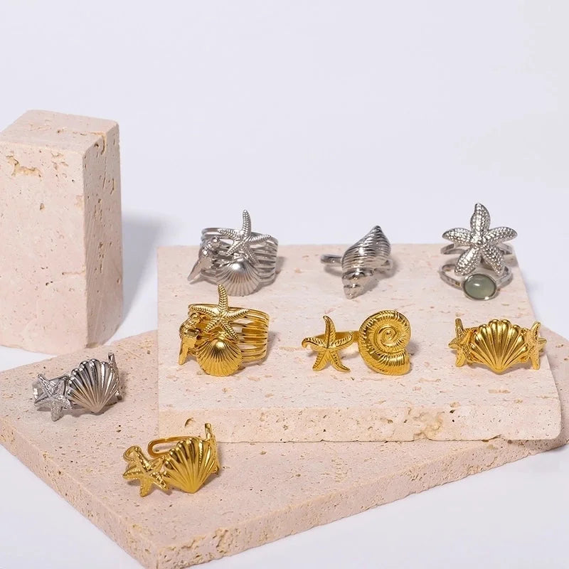 Beach Starfish Conch Shell 304 Stainless Steel 18K Gold Plated Plating Open Rings