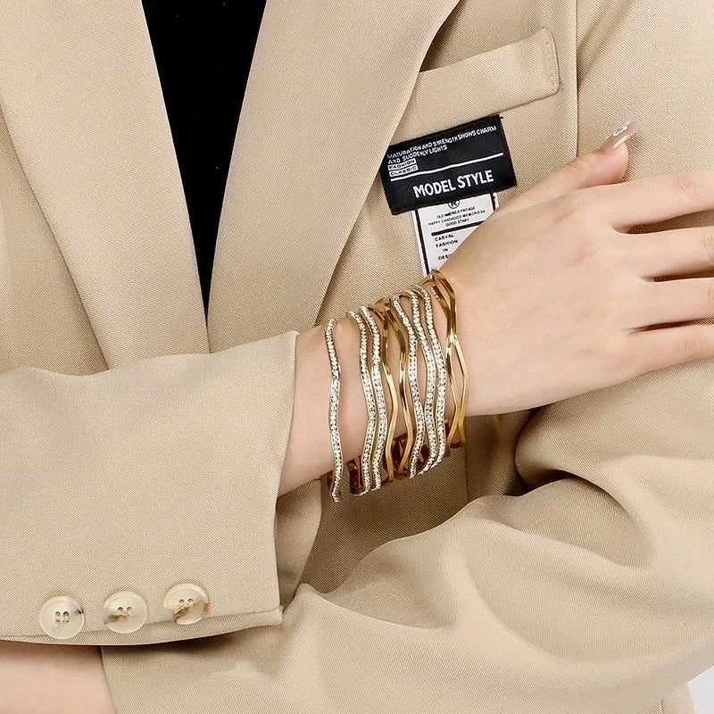 Bridal Minimalist Geometric 304 Stainless Steel 18K Gold Plated Zircon Bangle In Bulk
