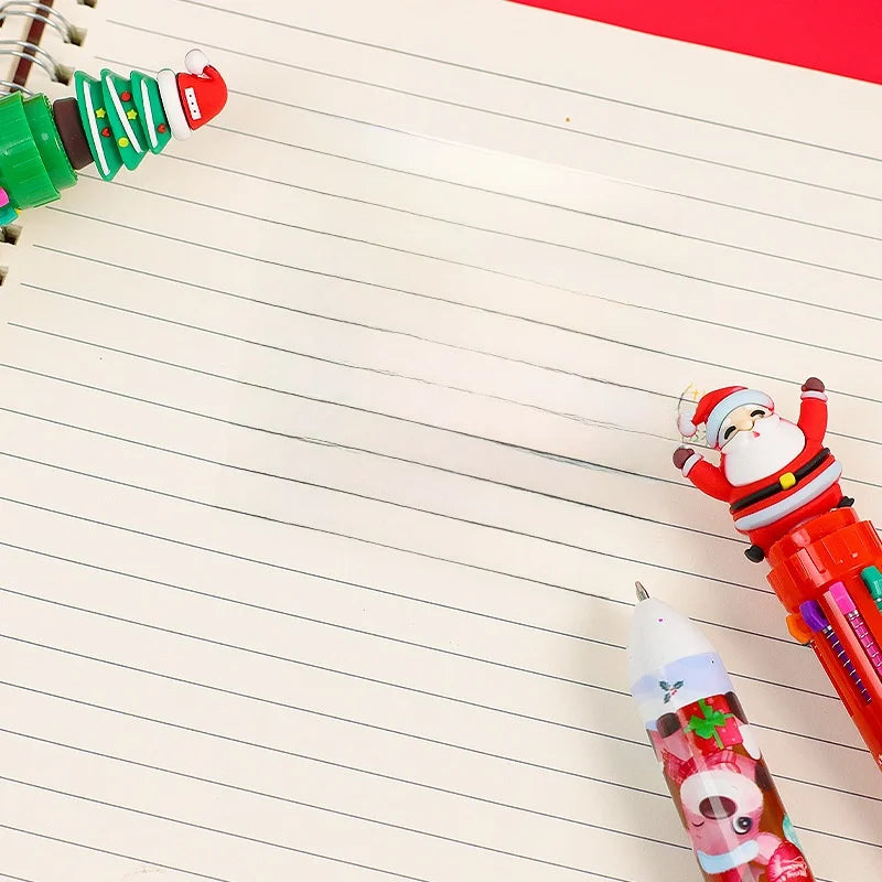 Cartoon Ten-color Press Pen Children's Student 10-color Ballpoint Pen Christmas Gift