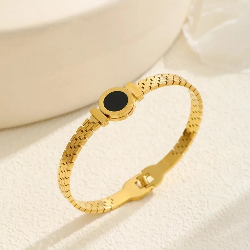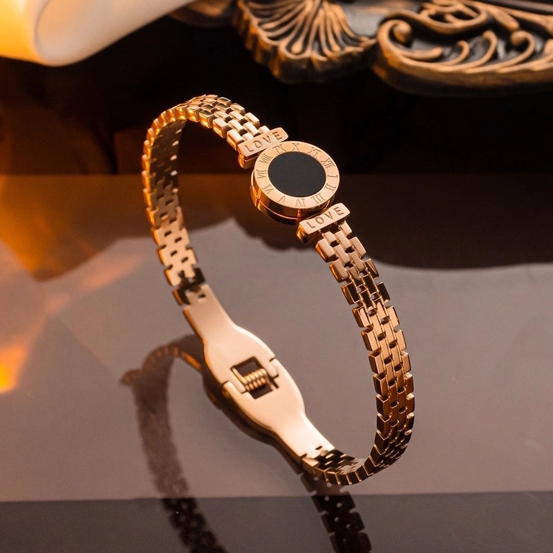 Casual Elegant Streetwear Roman Numeral Titanium Steel 18K Gold Plated Bangle In Bulk