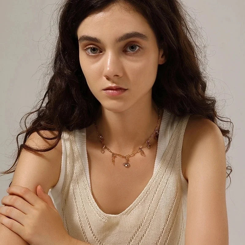 Casual Minimalist Heart Shape Flower 304 Stainless Steel Artificial Rhinestones Zircon 18K Gold Plated Polishing Inlay Bracelets Necklace