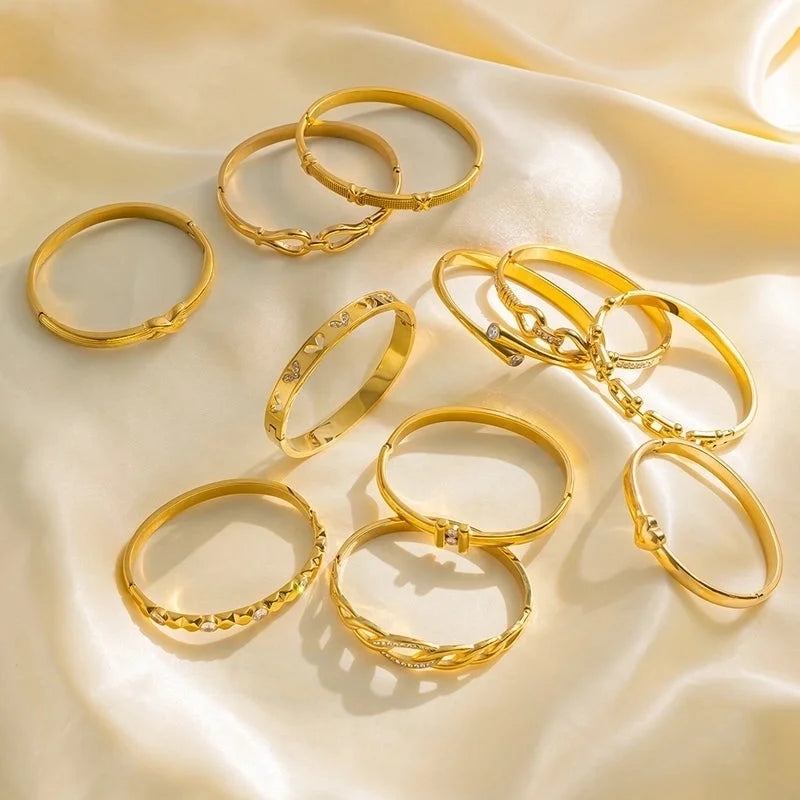 Casual Minimalist Heart Shape Flower Titanium Steel Rhinestones Bangle In Bulk