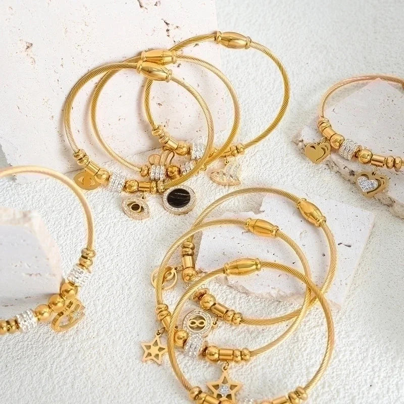 Casual Minimalist Star Heart Shape Butterfly Titanium Steel 18K Gold Plated Rhinestones Bangle In Bulk