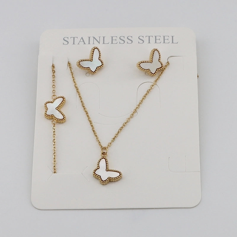 3 Pieces Casual Sweet Classic Style Butterfly 304 Stainless Steel Gold Plated Bracelets Earrings Necklace
