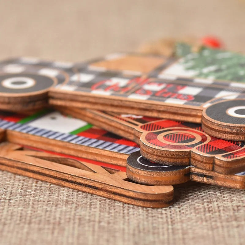 Christmas Cartoon Style Cute Car Wood Party Festival Hanging Ornaments