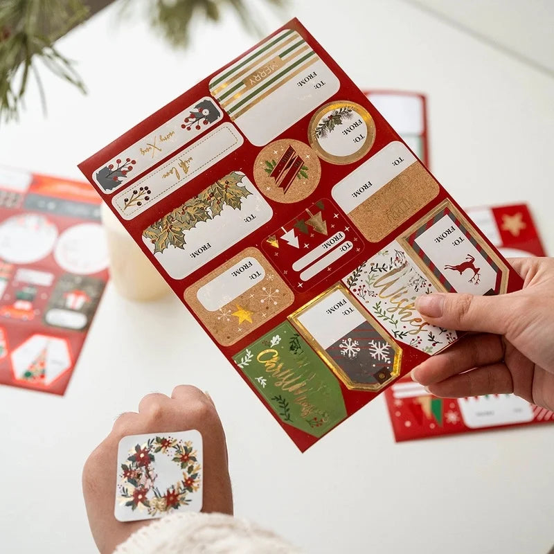 Christmas Cartoon Style Cute Christmas Tree Wreath PVC Self-adhesive Holiday Daily Gift Stickers Gift Wrapping Supplies