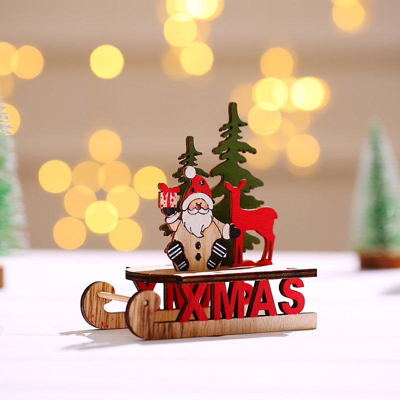 Christmas Decoration Supplies Wooden Diy Sleigh Ski Cartoon Old Man Desktop Ornaments Children's Gifts Small Gifts