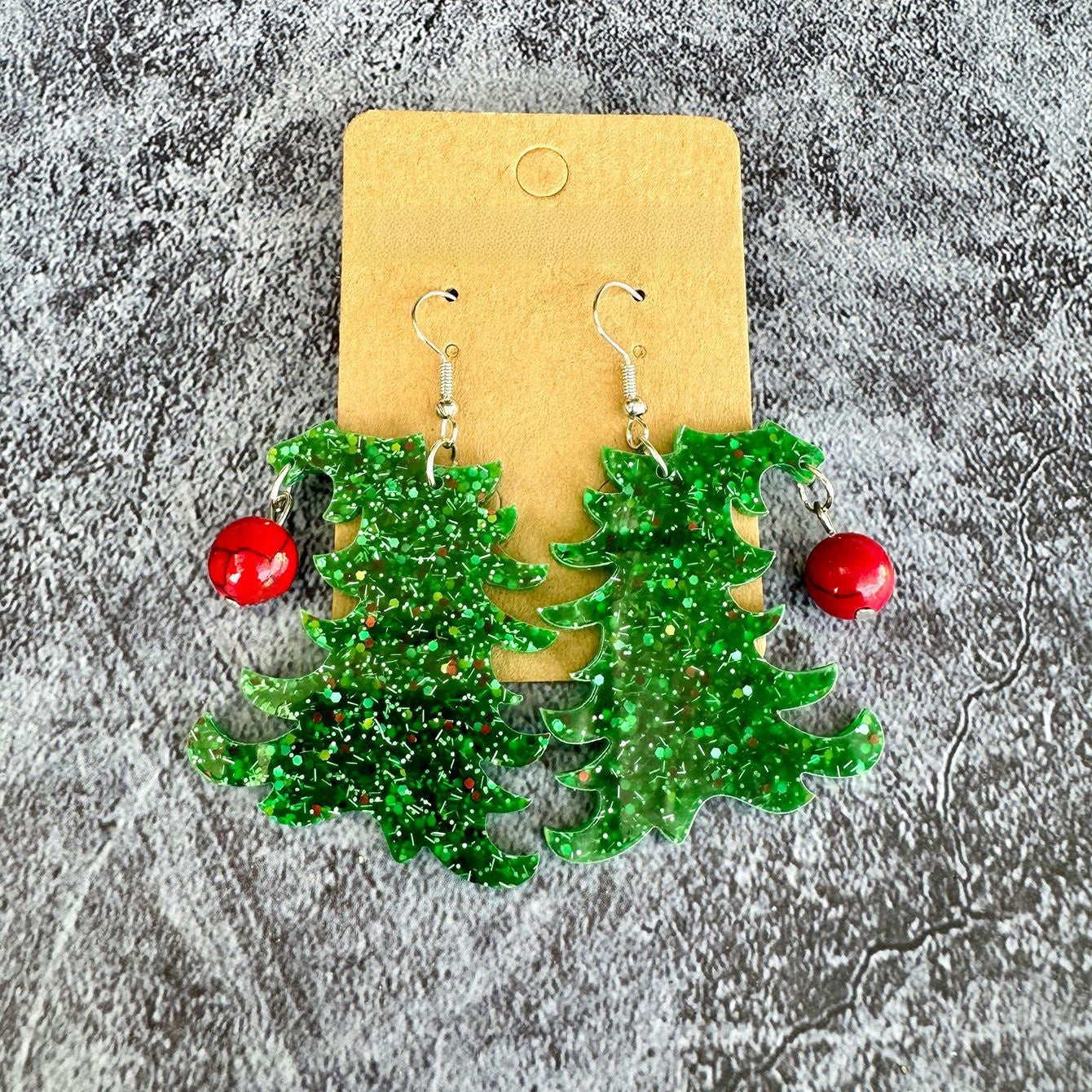 Christmas Tree Acrylic Spliced Earrings Christmas Exaggerated Festival