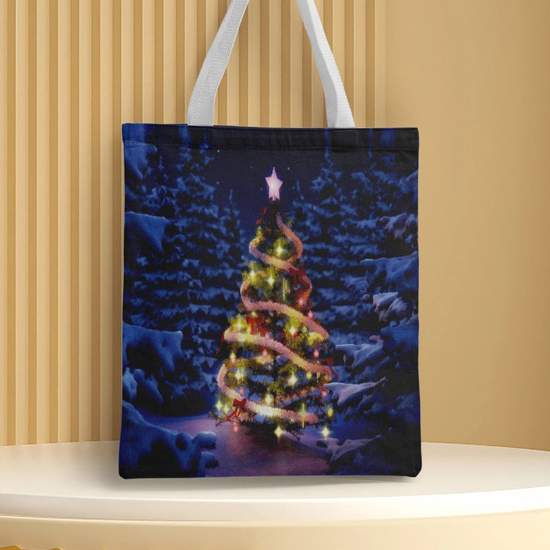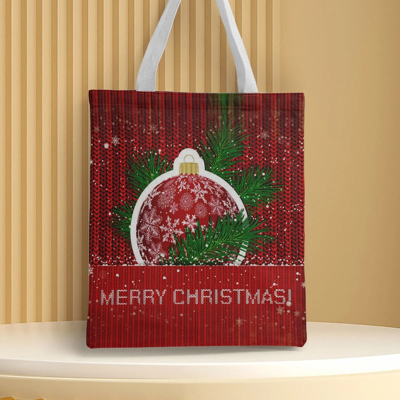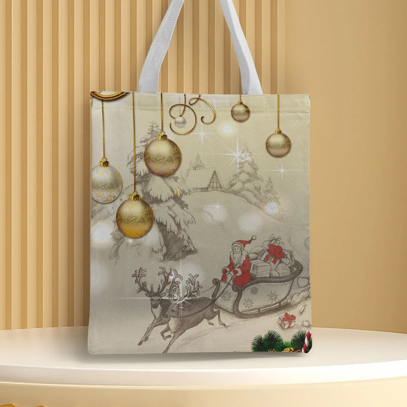 Christmas Unisex Polyester Christmas House Christmas Tree Santa Claus Cute Square Open Handbag