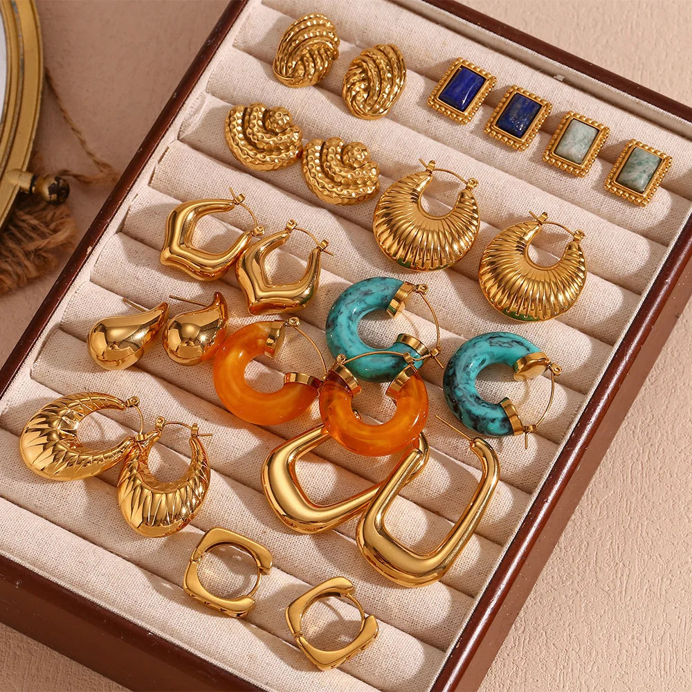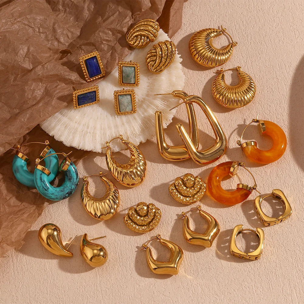 Fashion Round Circle Geometric Stainless Steel 18K Gold Plated Earrings