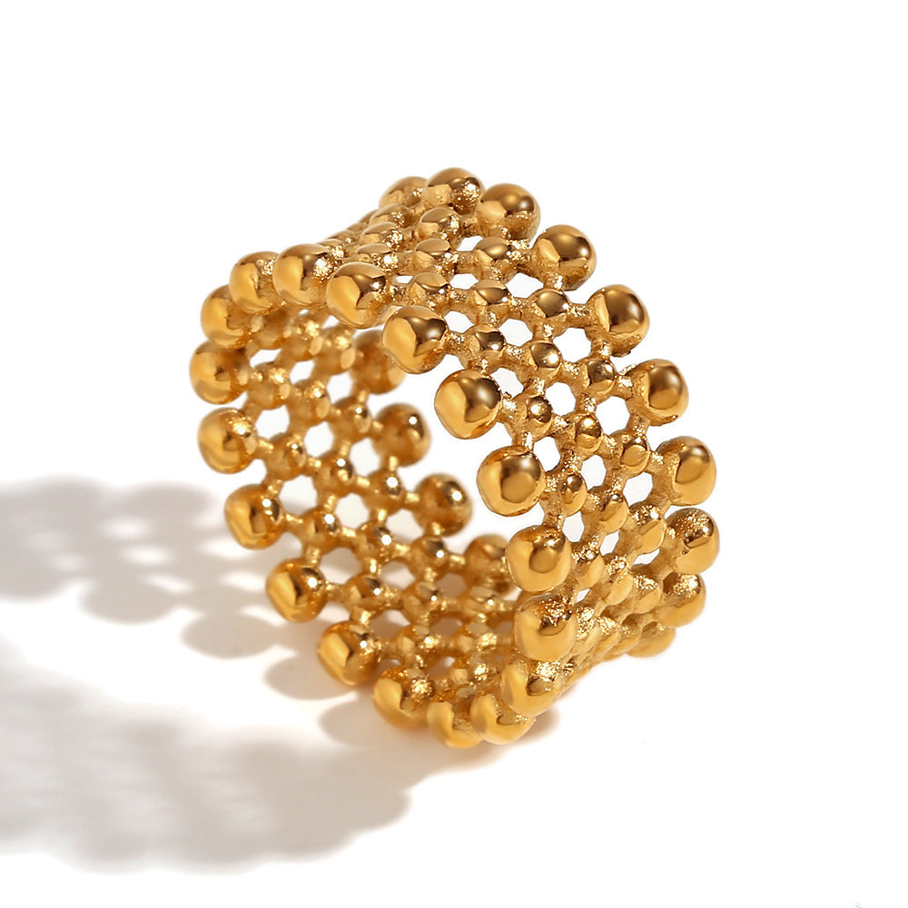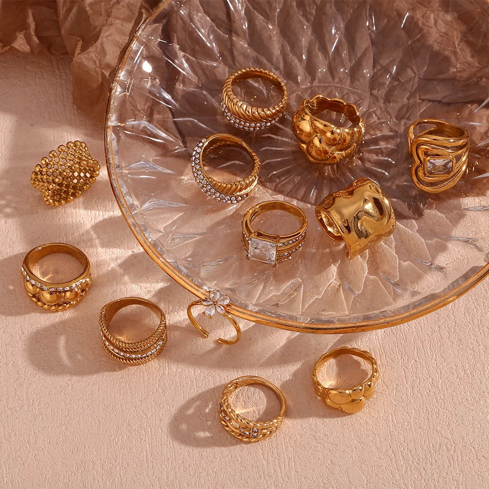 Fashion Niche Stripe Round Circle Geometric Stainless Steel 18K Gold Plated Rings