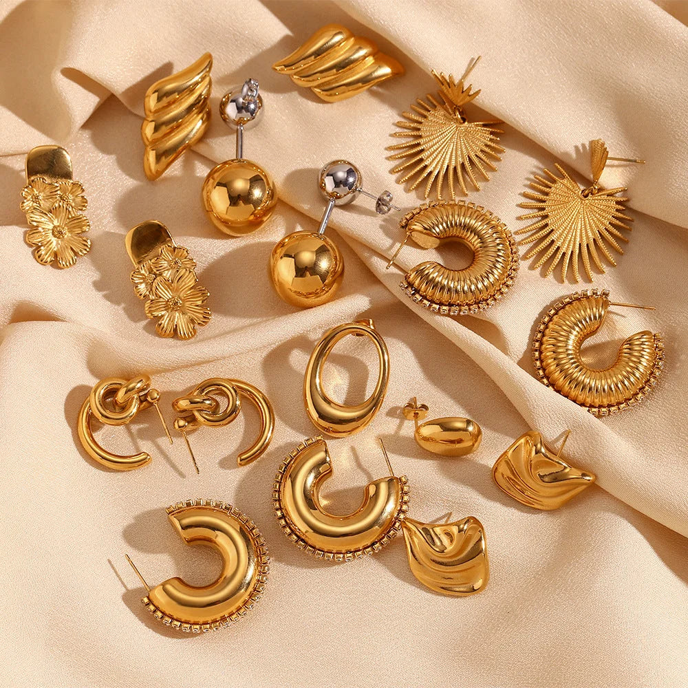 Fashion Round Circle Geometric Heart Stainless Steel 18K Gold Plated Earrings