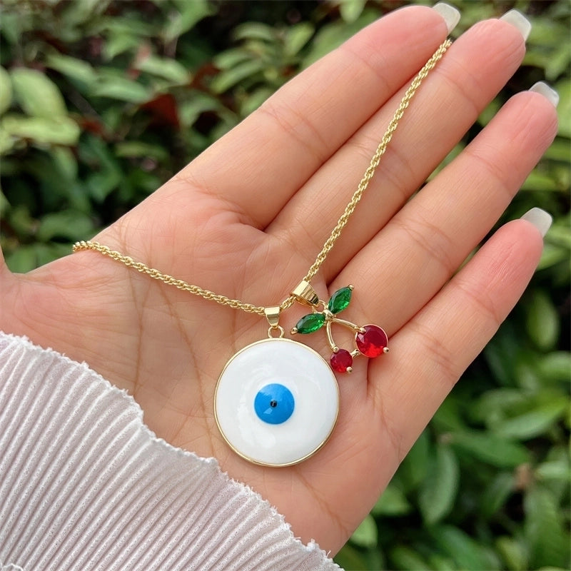 Classic Style Cherry Heart Shape Copper Zircon 18K Gold Plated Pendant Necklace