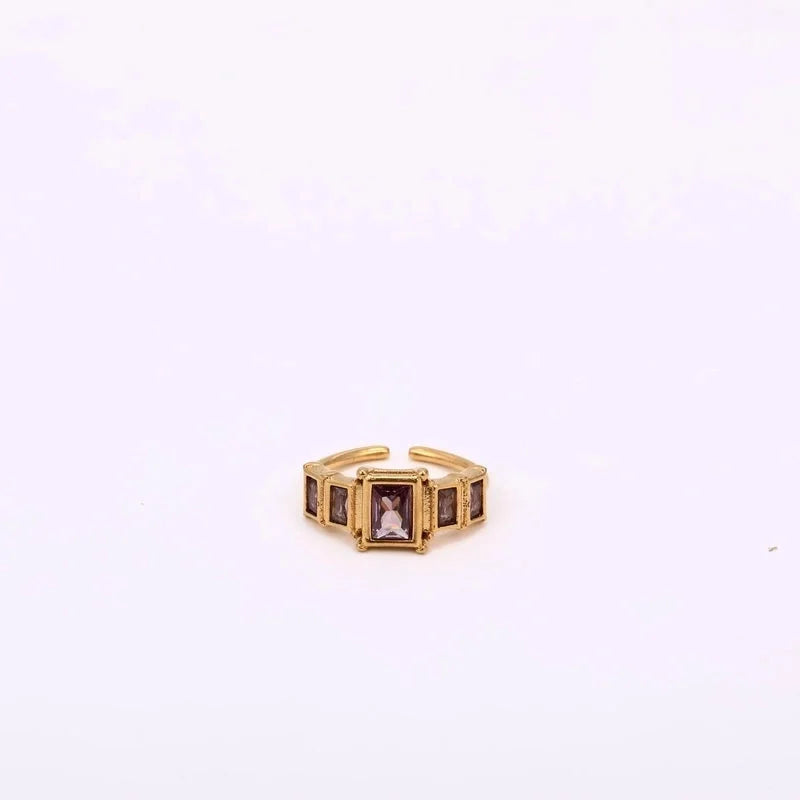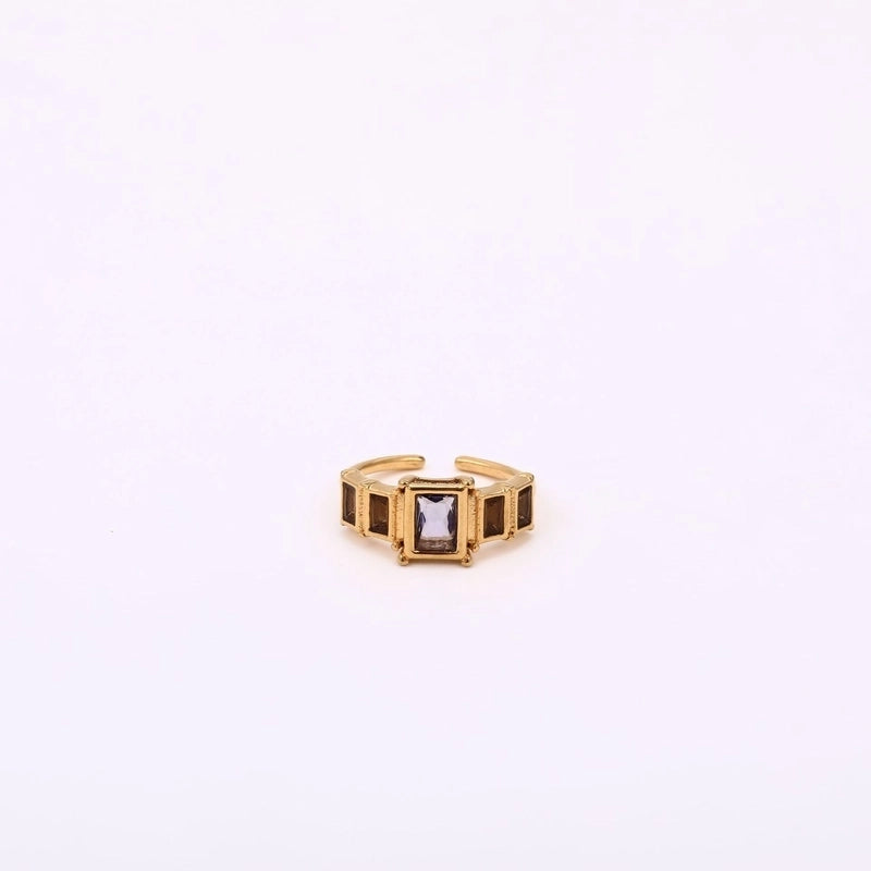 Classic Style Rectangle 304 Stainless Steel Zircon 18K Gold Plated Inlay Open Rings