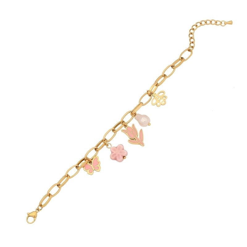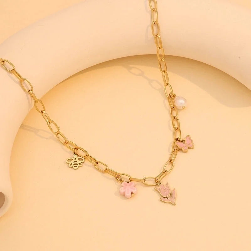 Commute Flower Bow Knot 304 Stainless Steel 18K Gold Plated Multi Charms Epoxy Bracelets Earrings Necklace